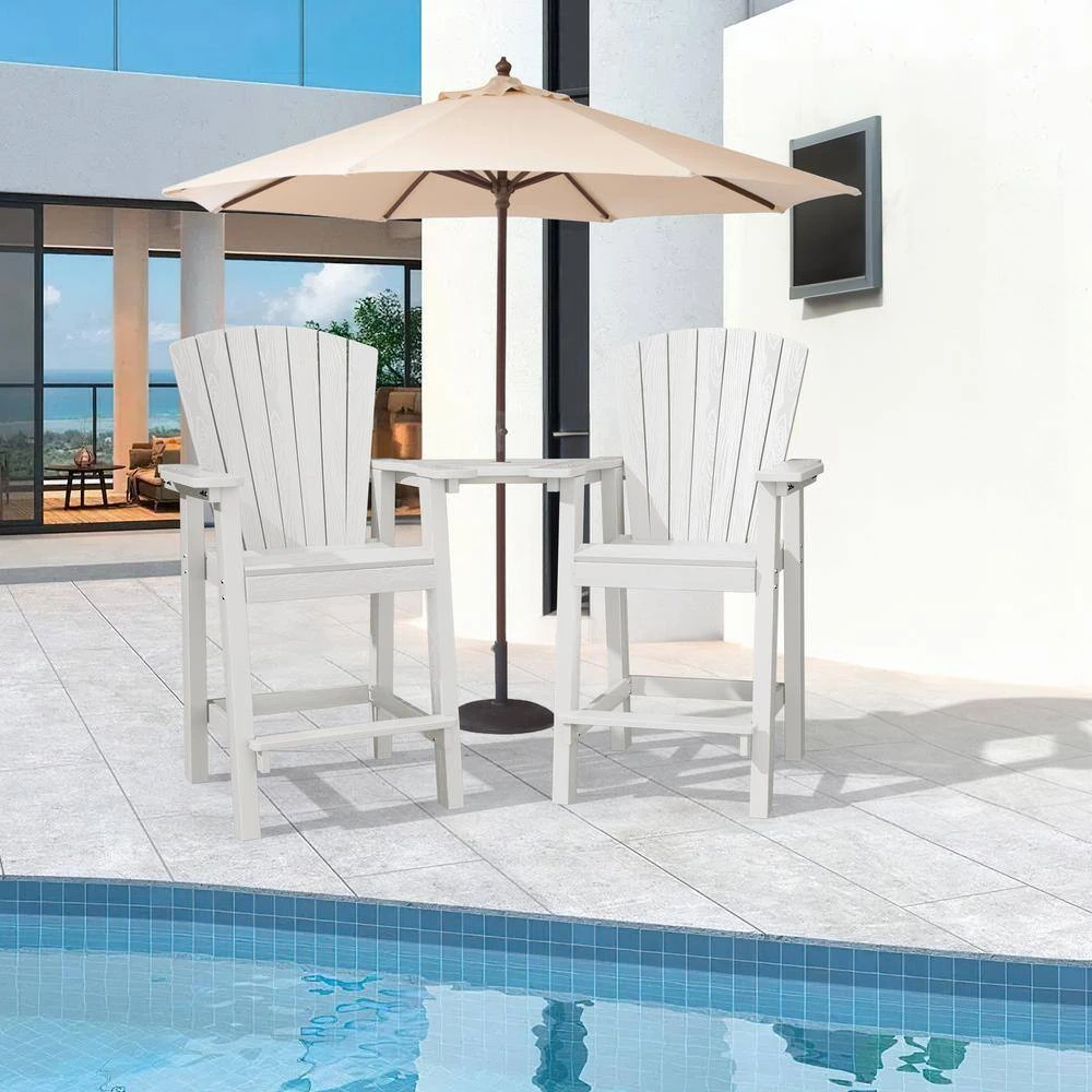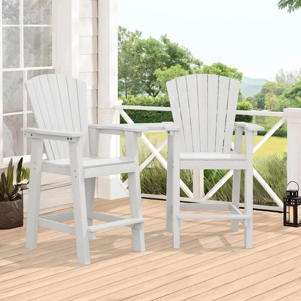 You may need a tall Hatto to see beautiful views in your decks or balconies. It comes with 2 chairs and a center connecting table. The chairs can be used separately also by removing the connecting table. This all-weather balcony tall Adirondack chair set fits well into any outdoor space, so you and a companion can relax and enjoy quality one-on-one time in comfort and style.