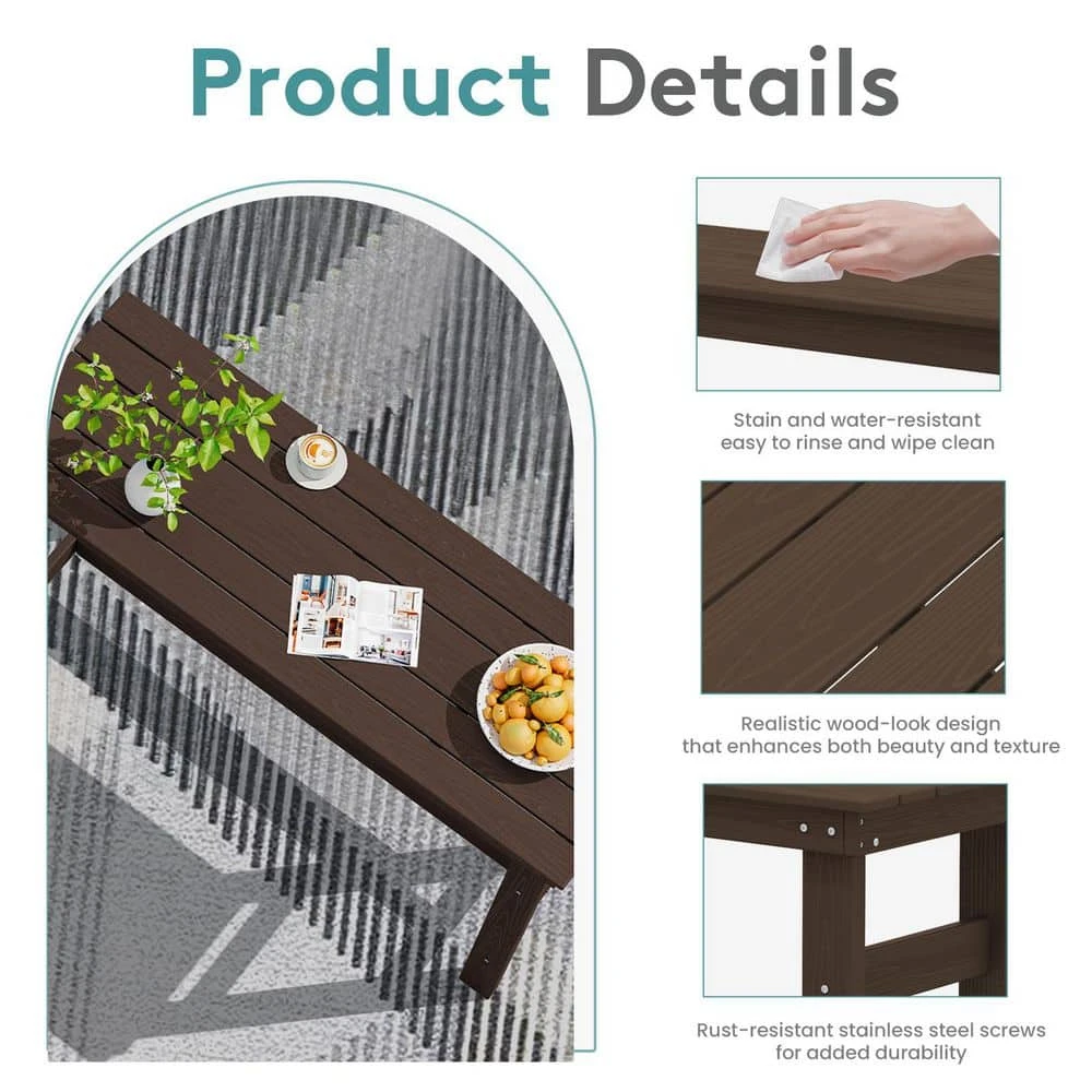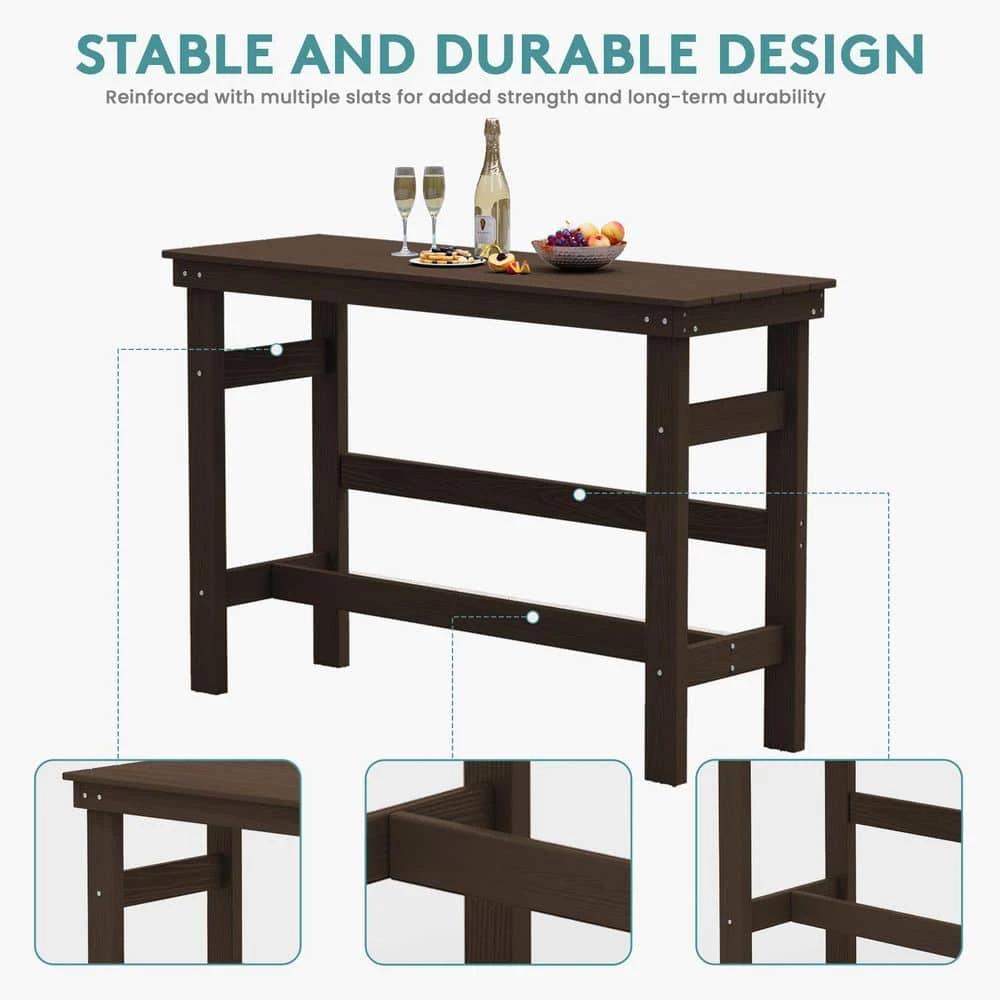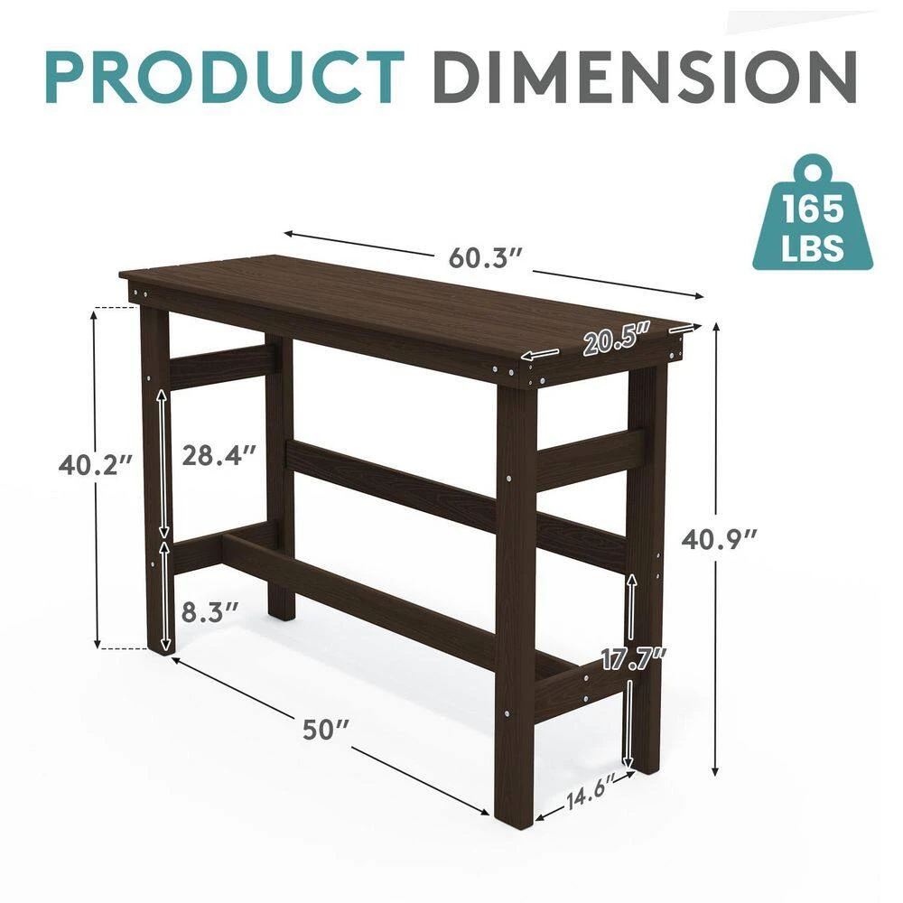 HDPE Rectangle Plastic Bar Height Outdoor Dining Table In Coffee