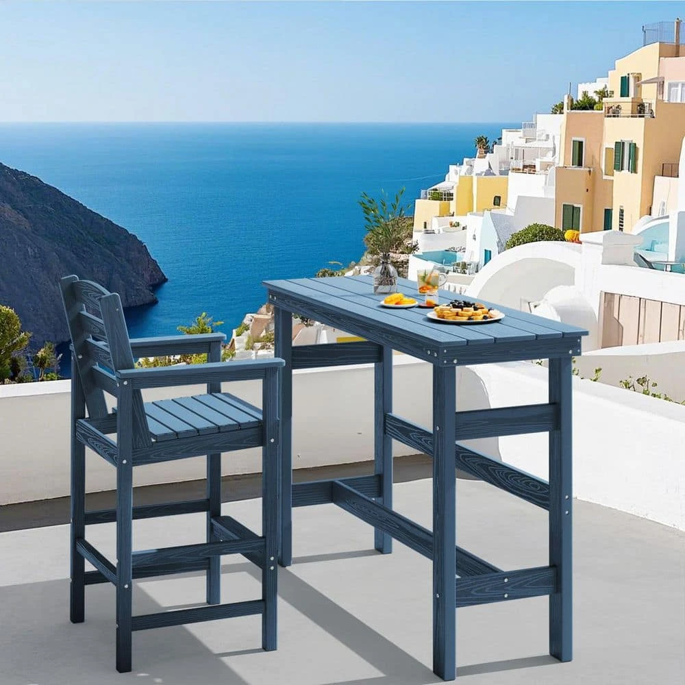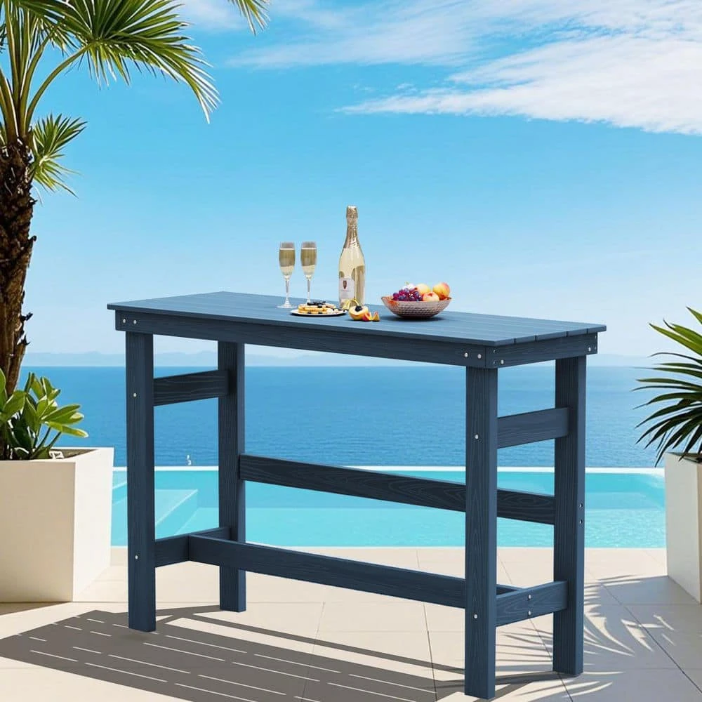 HDPE Rectangle Plastic Bar Height Outdoor Dining Table In Navy