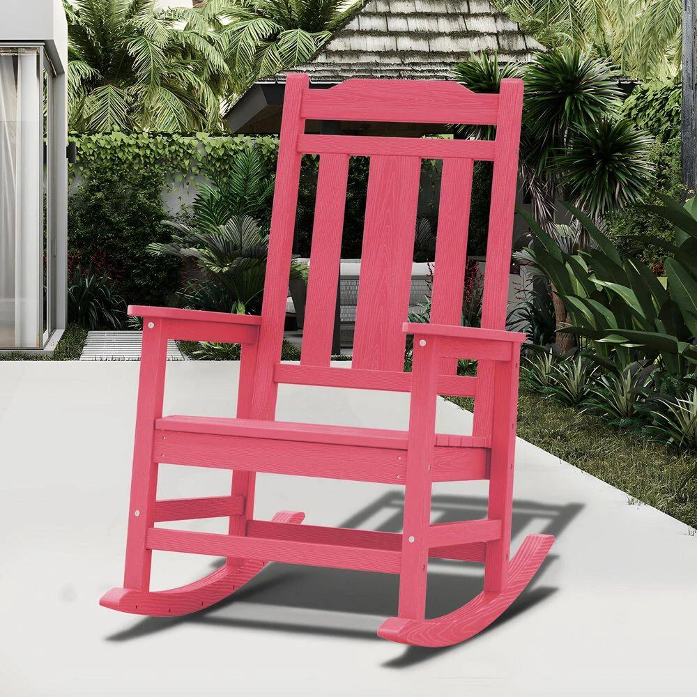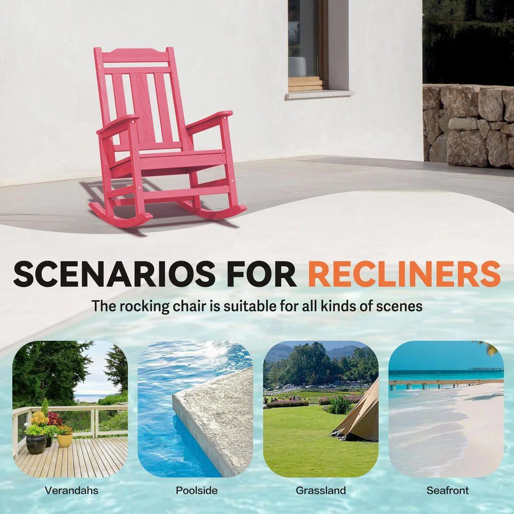 Light Pink HDPE Plastic Adirondack Chair Outdoor Rocking Chair For Patio And Garden (1-Pack)