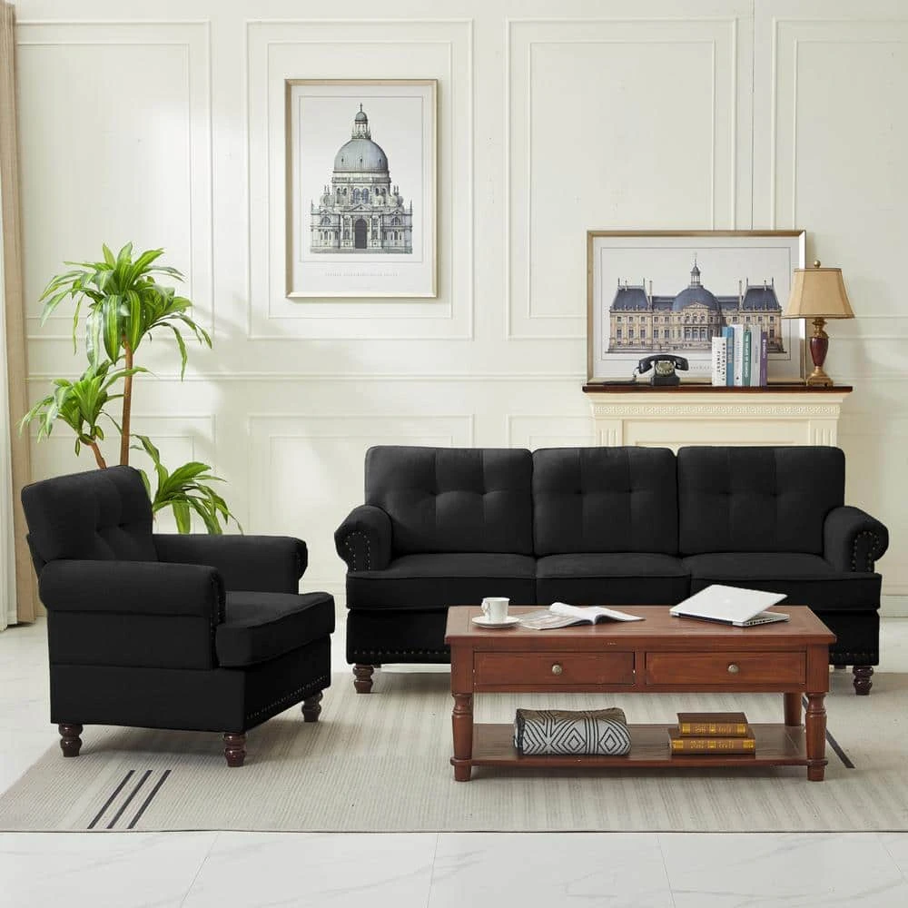 Bring home a sofa set that will redefine the way you view your living space with polished textures and impeccable style. Our sofa and chair set combines chenille and a studded design to fit any room. Upholstered in gorgeous summary tufting and waffle stitching, this sofa set offers texture and upgraded design to your decor. Rubberwood legs are designed for added durability.