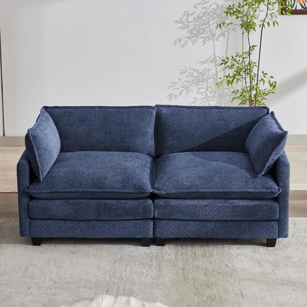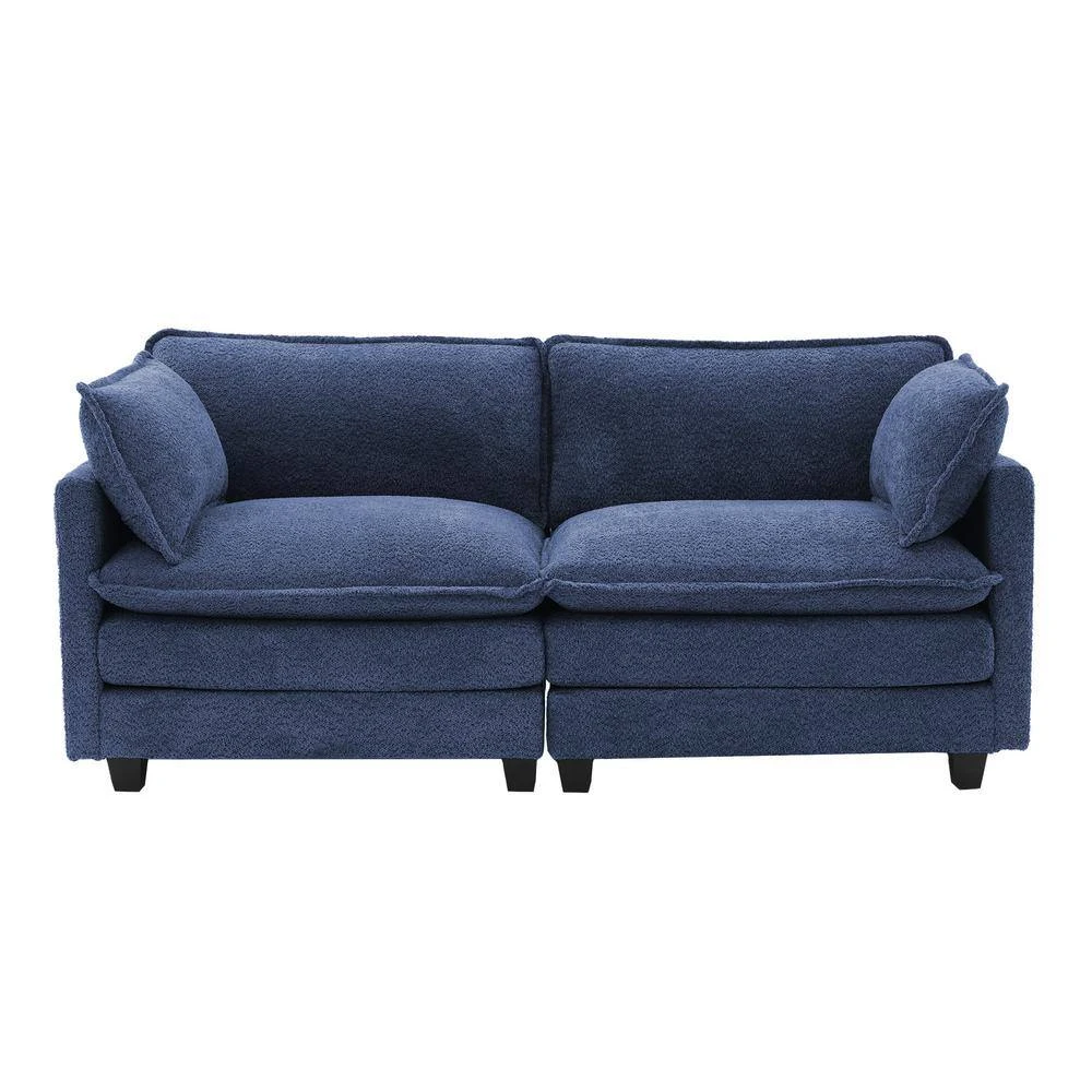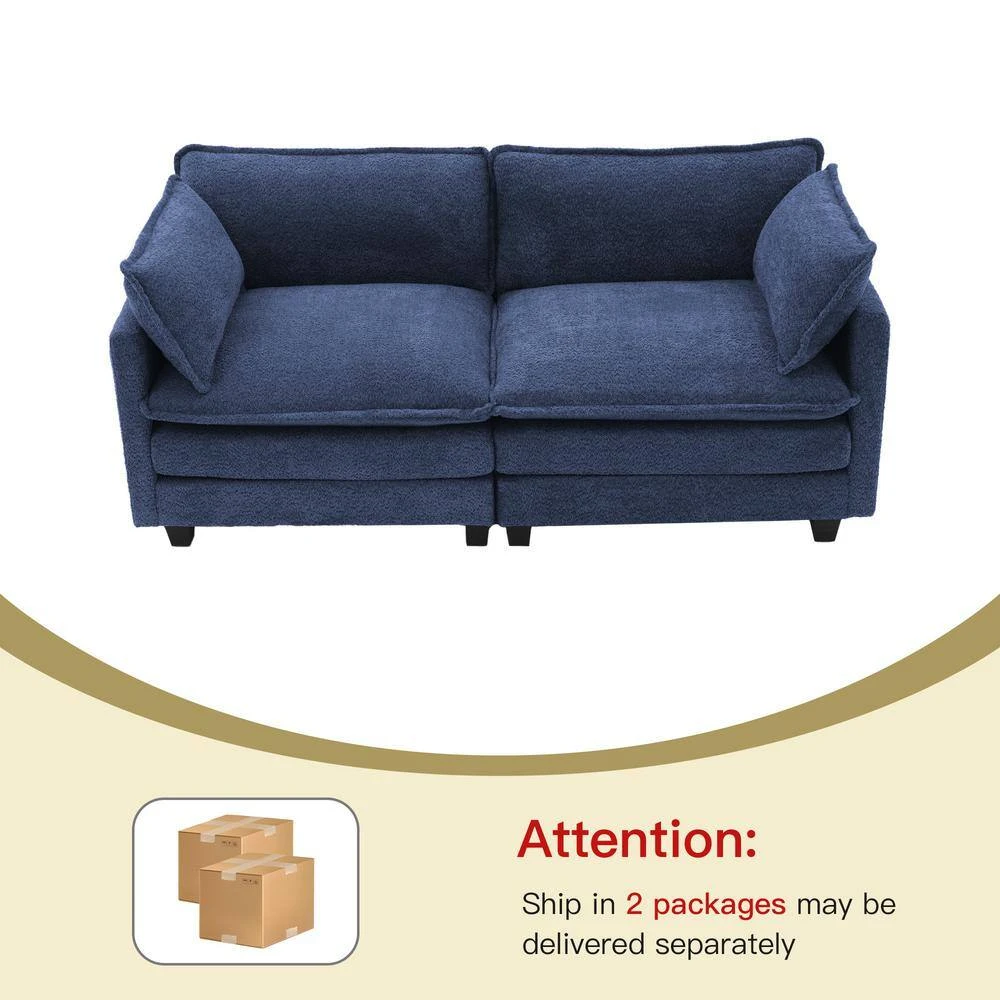 Modern 76.77 In. Navy Looped Velvet Loveseat With Two Pillows For Living