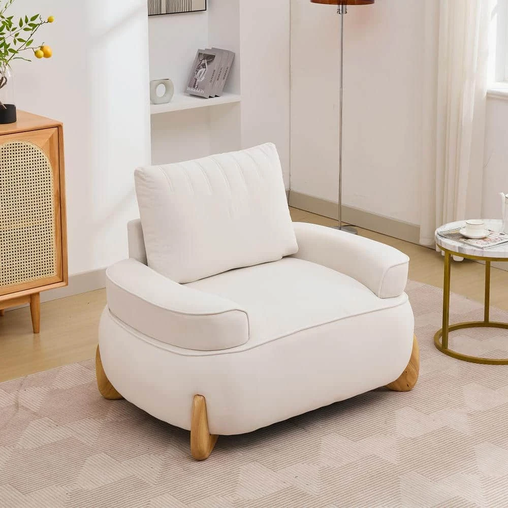 - This living room chair is built on a solid wood frame and has an exceptional weight capacity of up to 250 pounds. The combination of a wooden frame and rubber wooden legs, together with a thick cushion, gives the chair a new and durable look.