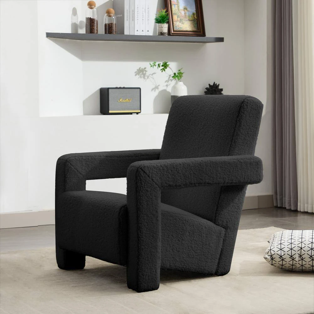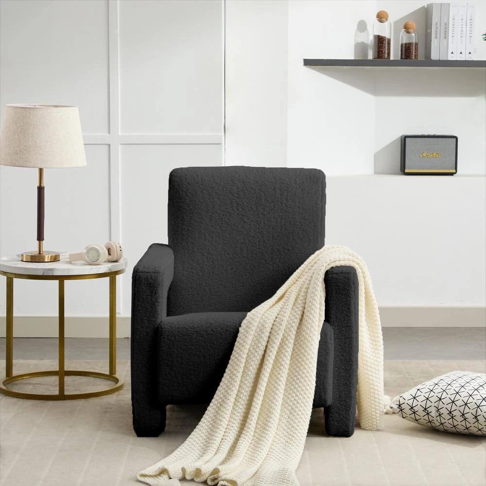 This chair is uniquely shaped and designed to accent the bedroom. The entire fabric is made of lambswool, giving it a soft touch. Inside, there is a wooden inner frame and full foam padding for durability. Purchasing this chair for your home is a great choice for a moment of respite!
