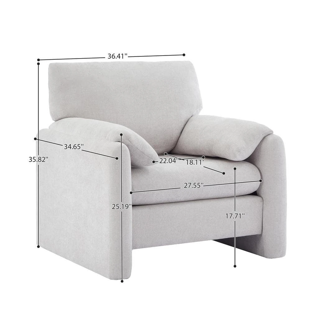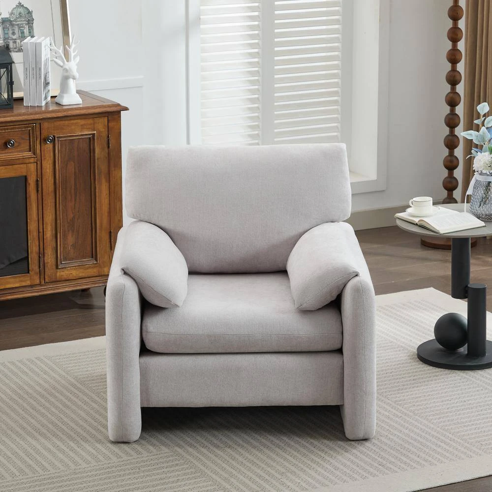 Modern Grey Chenille Oversized Wood Accent Outdoor And Indoor Lounge Chair With Armrest Cushion For Living Room