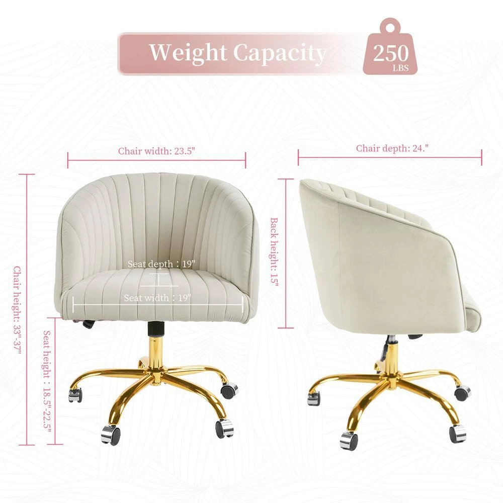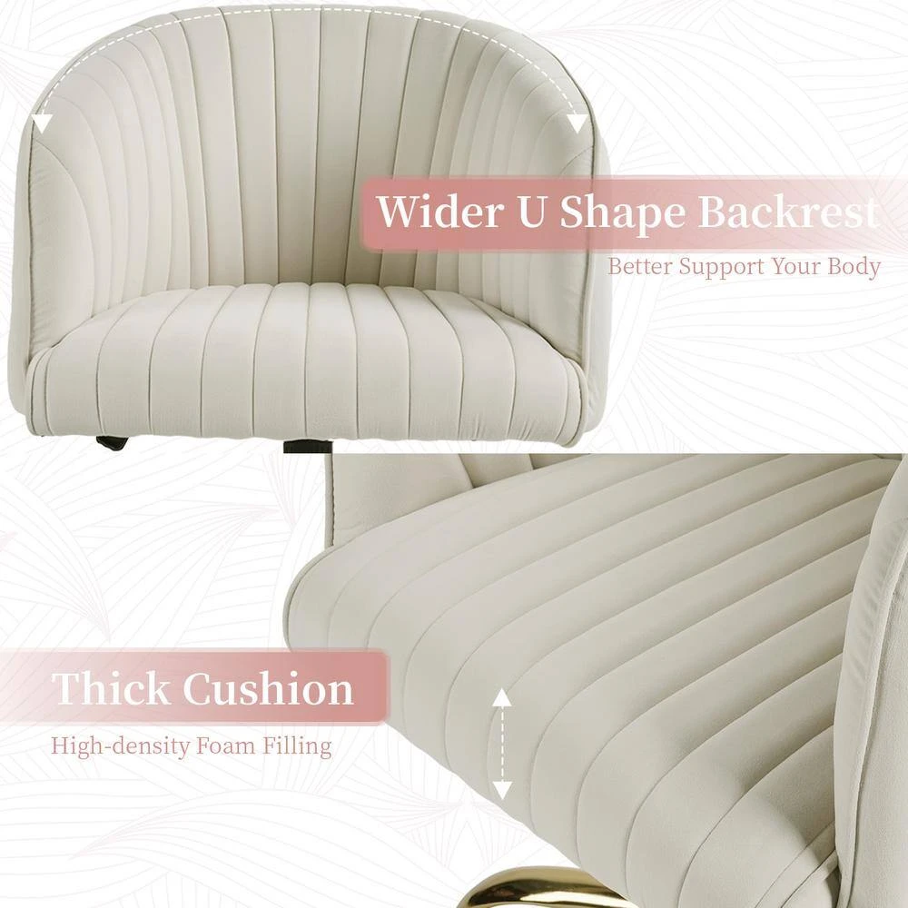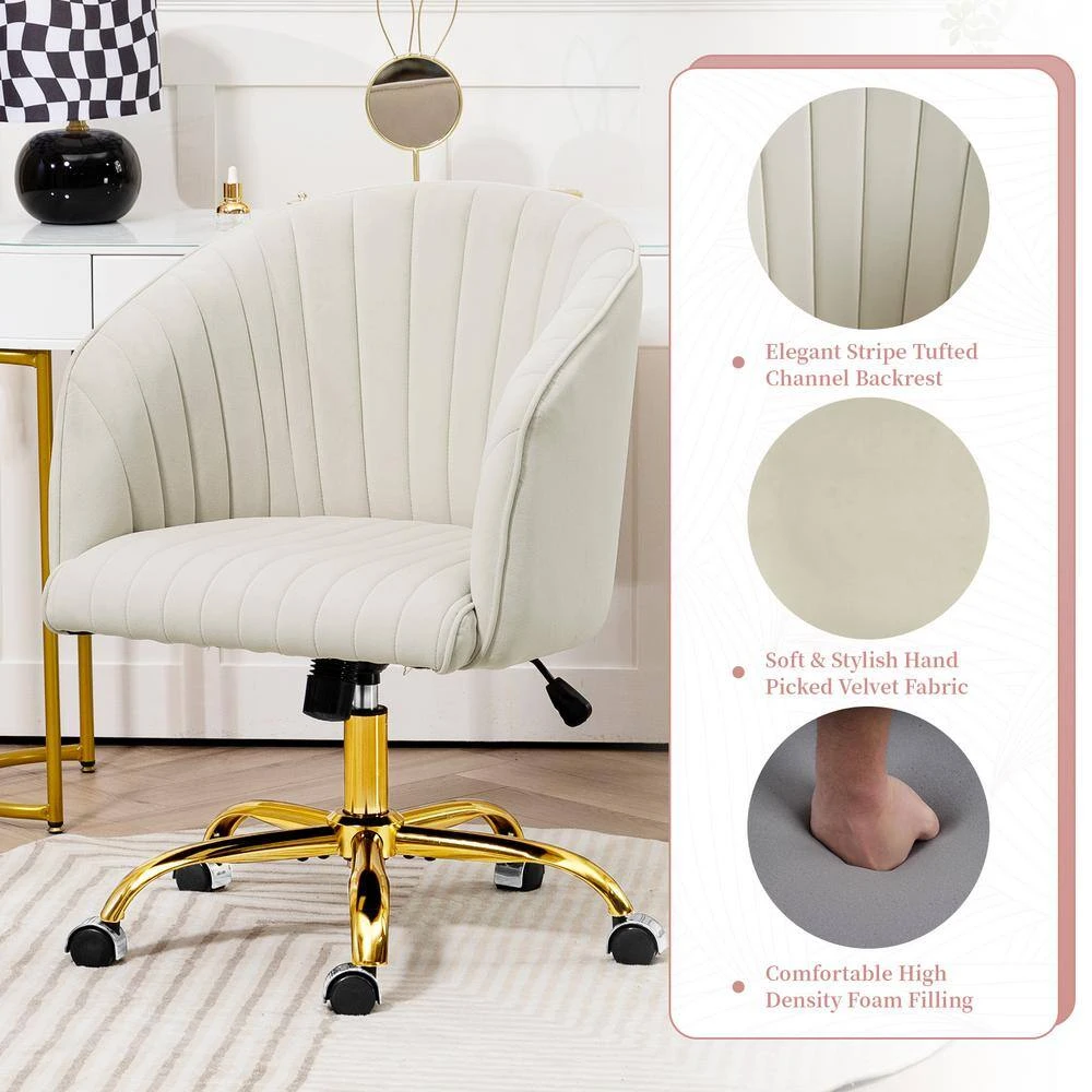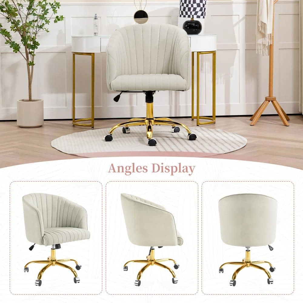 Modern White Velvet Height Adjustable Office Desk Chair With Upholstered Back For Home Office Bedroom Study