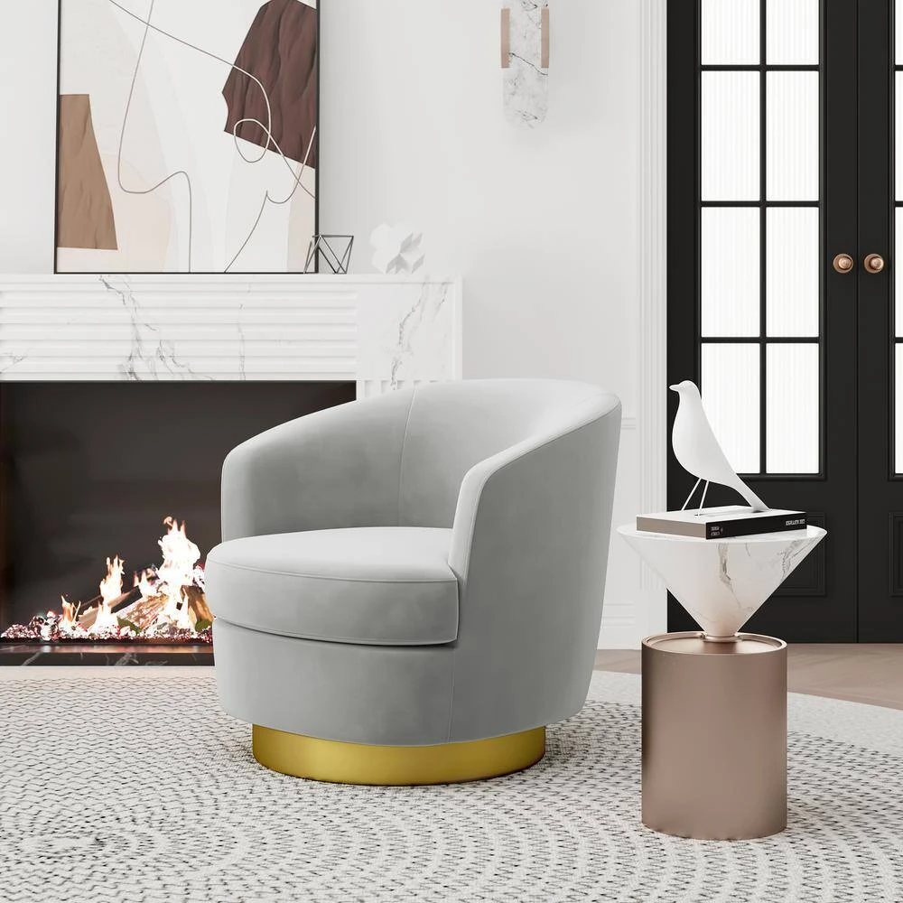 Nancy Modern 360° Swivel Grey Non-falling Velvet Fabric Barrel Accent Armchair For Bedroom Or Living Room