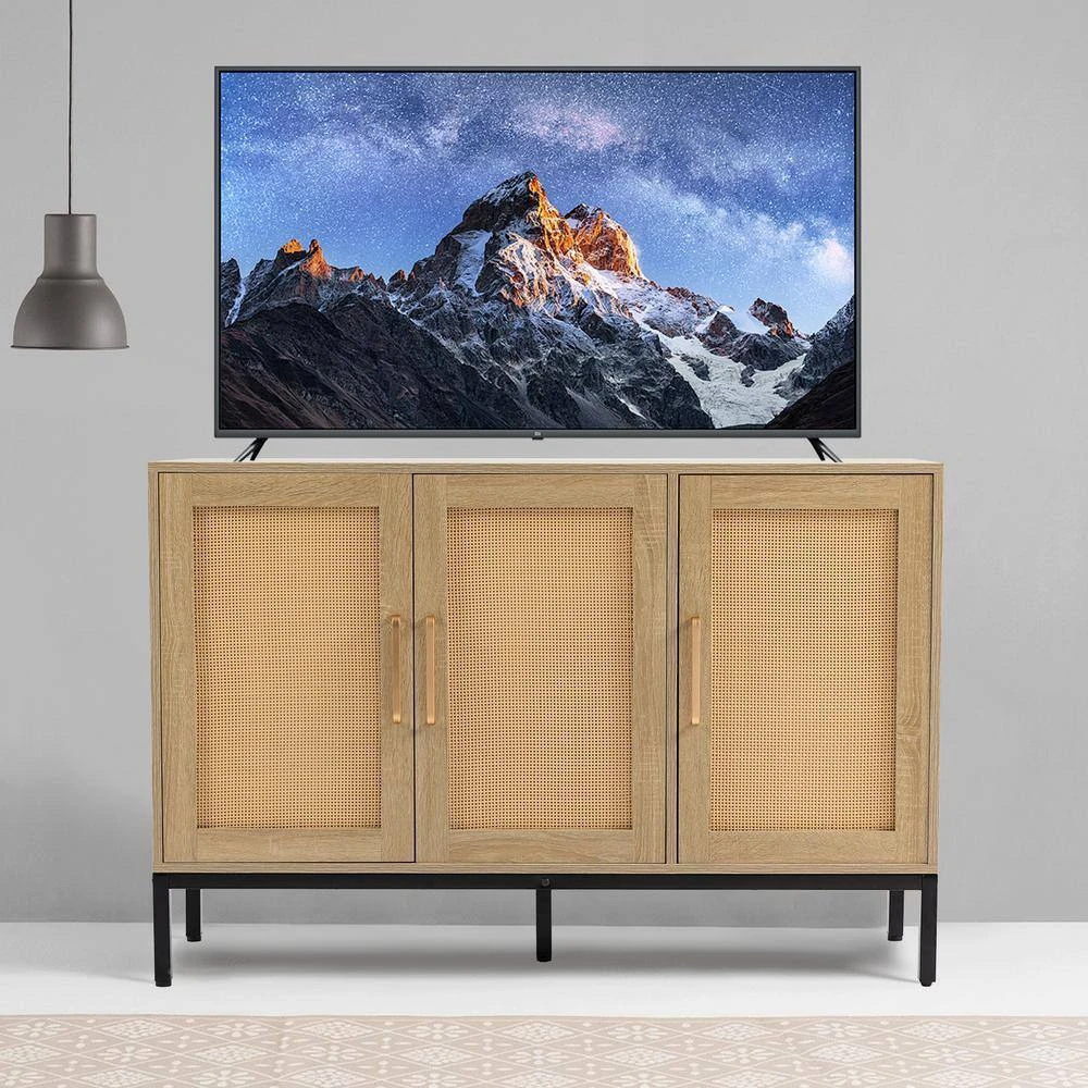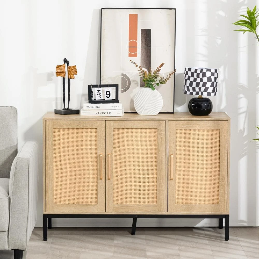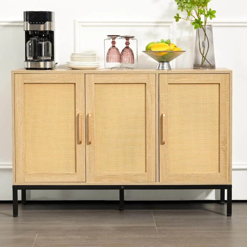 Natural Wood 47.24 In. W Rattan Contemporary Storage Sideboard With Adjustable Legs
