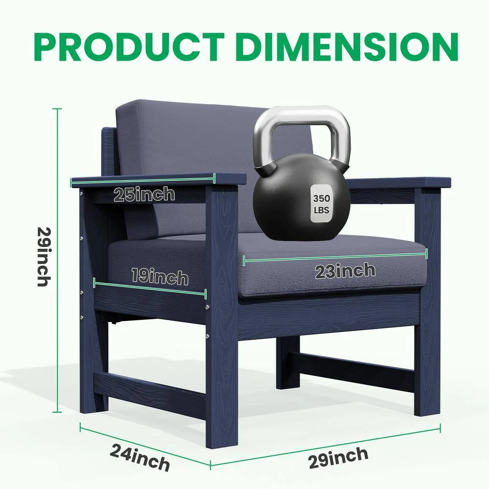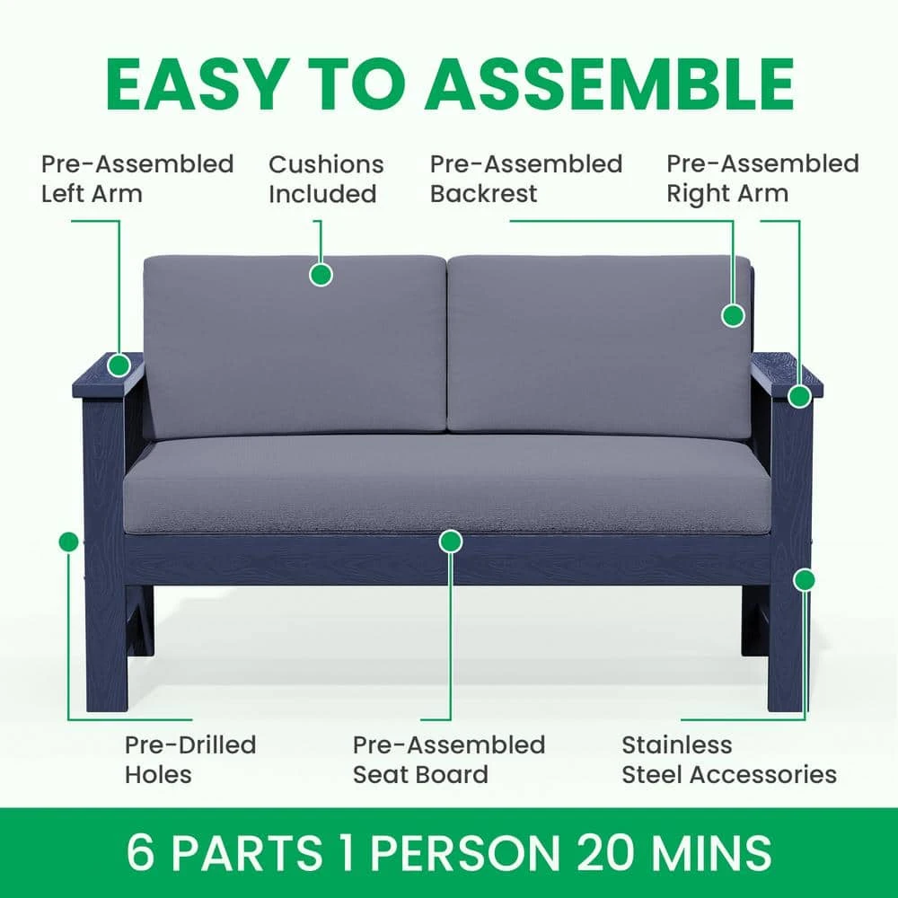 Navy 4-Piece HDPE Plastic Patio Conversation Set With Grey Cushions