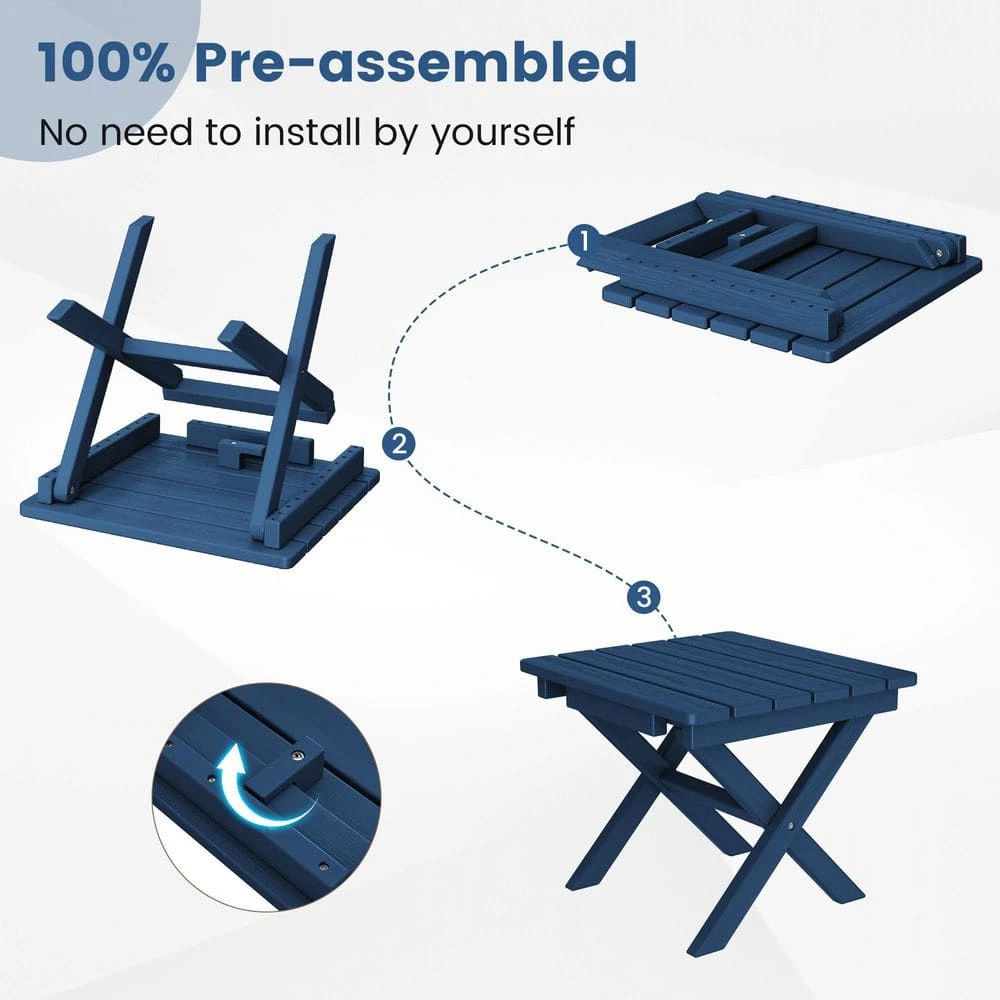 Navy Blue HDPE Plastic Portable Patio End Table Folding Outdoor Coffee Table (Set Of 2)