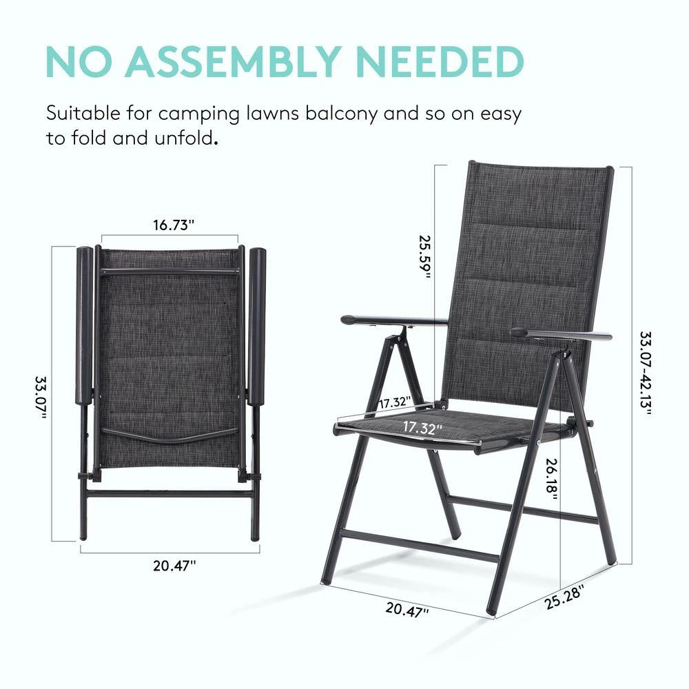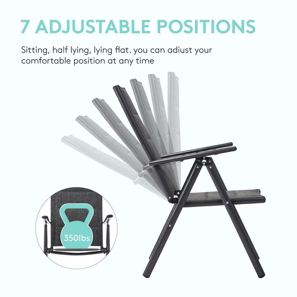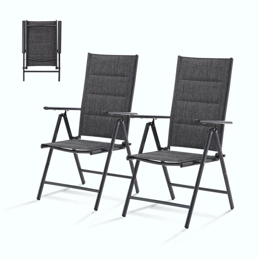 If you want maximum comfort and relaxation, choose this patio folding chair. It has 7 adjustable backrest positions, allowing you to choose the right angle for any need. with a high-quality iron frame and upholstered seat, the chair is very sturdy and has a weight capacity of 400 lbs. Comfortable armrests and a high backrest keep you cozy.