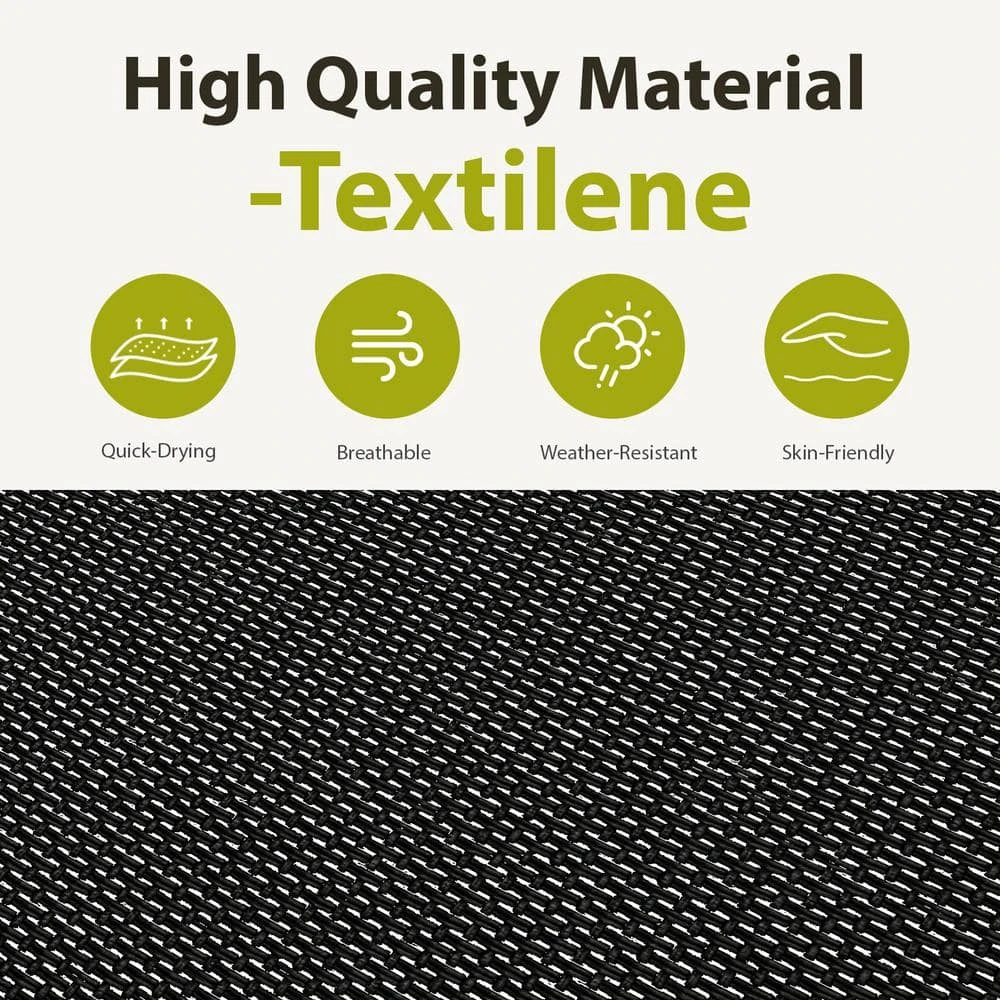 - Outdoor lounge chair is made of textilene fabric, which ensures that the product is completely weather-resistant, which can bring you extra coolness and comfort