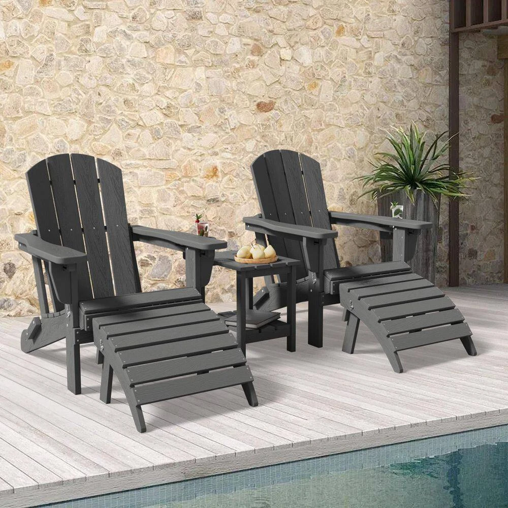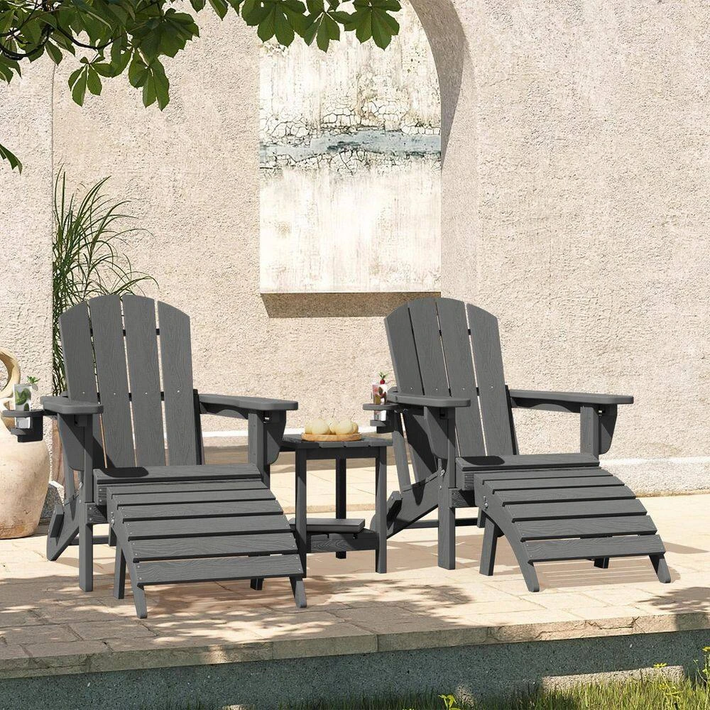 - 5-piece set: included 2 adirondack chairs, 2 ottoman and 1 patio end table, this 5-piece set allows you to spend leisure time in lawn, garden, patio, porch
