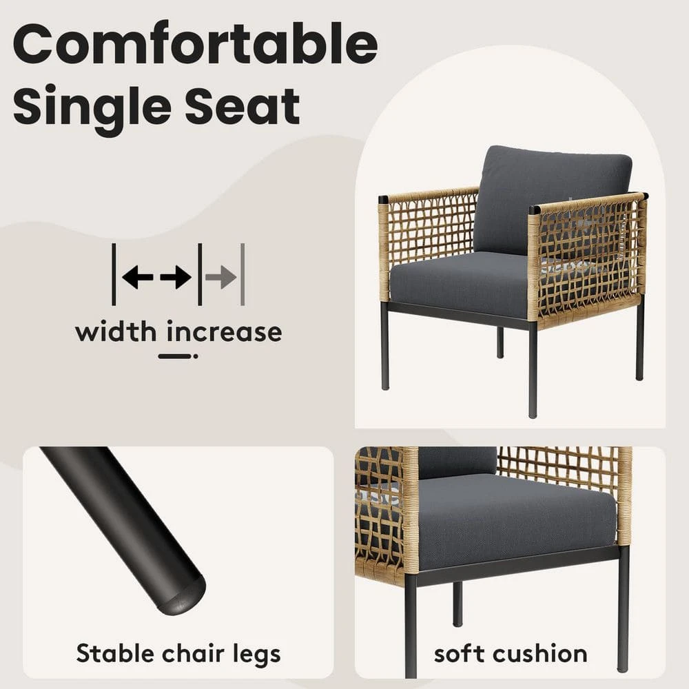 - Ergonomic and comfortable chair: our outdoor sofa comes with soft sponge cushion which can make you feel more relaxed when sit on it. the wide and deep chairs will provide enough room for you and your friends to sit comfortably. coming with the armrests at both sides, your arms can be relaxed and the armrests will provide support when you stand up