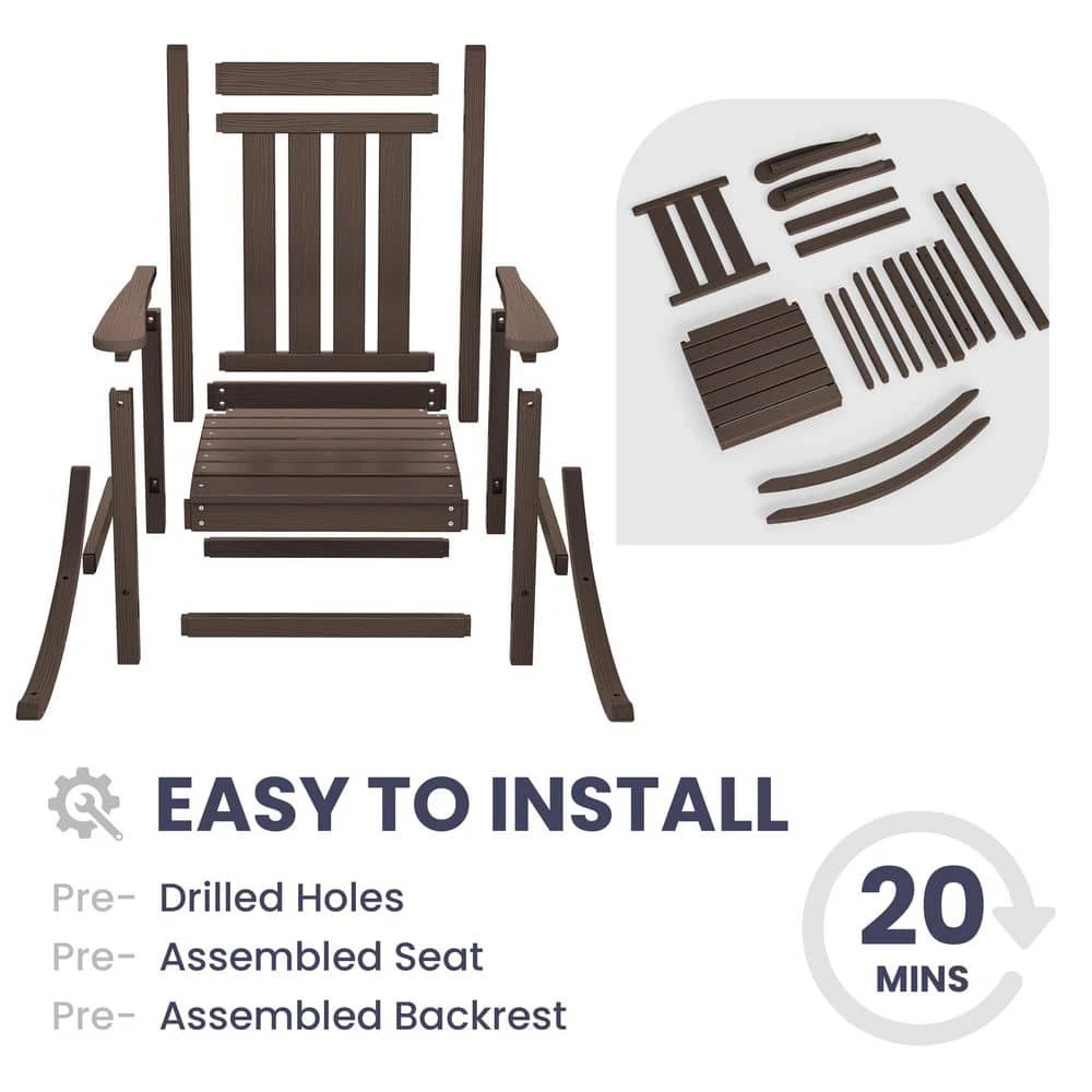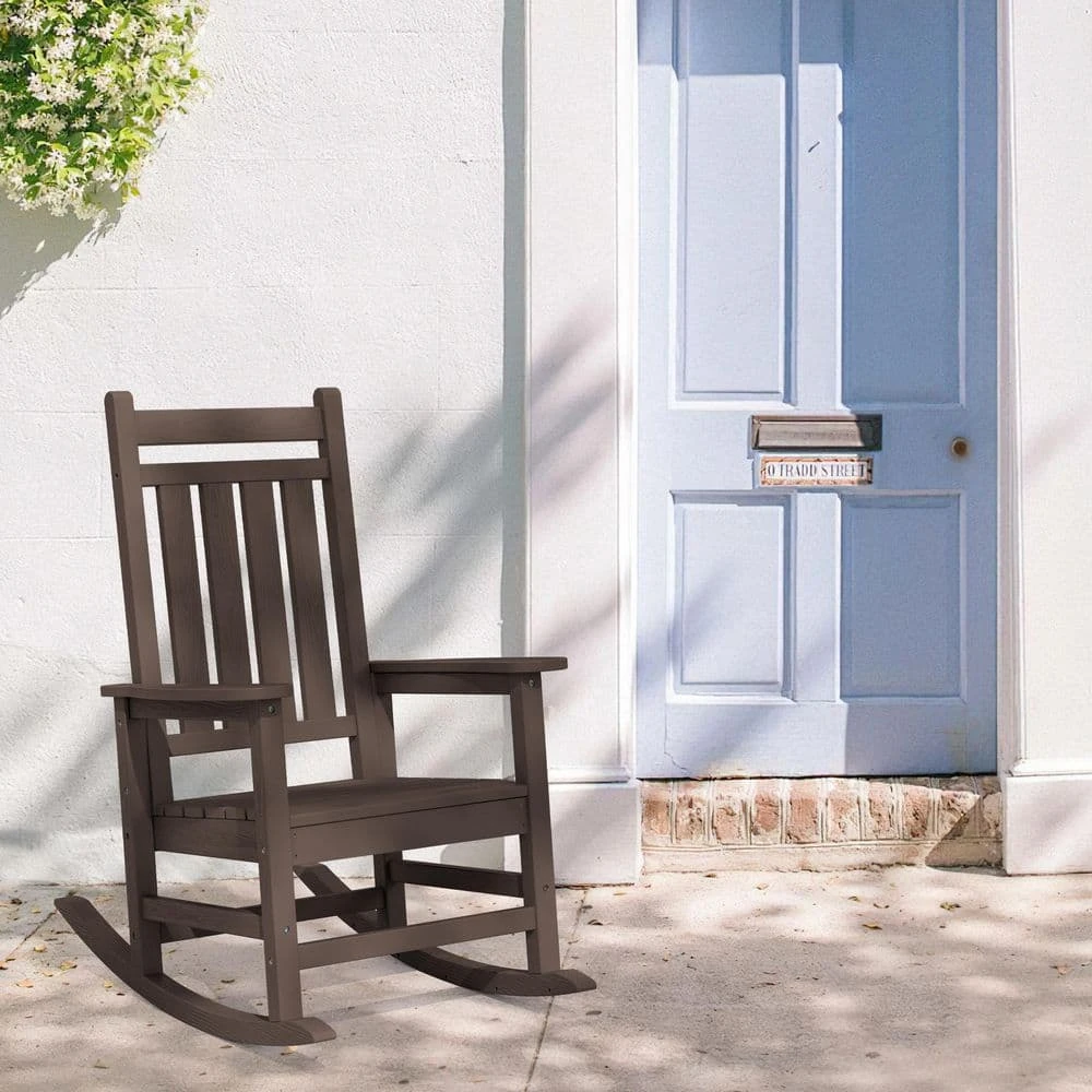 Oversized HDPE Resin Outdoor Patio Rocking Plastic Adirondack Chair In Coffee Brown (1-Pack)