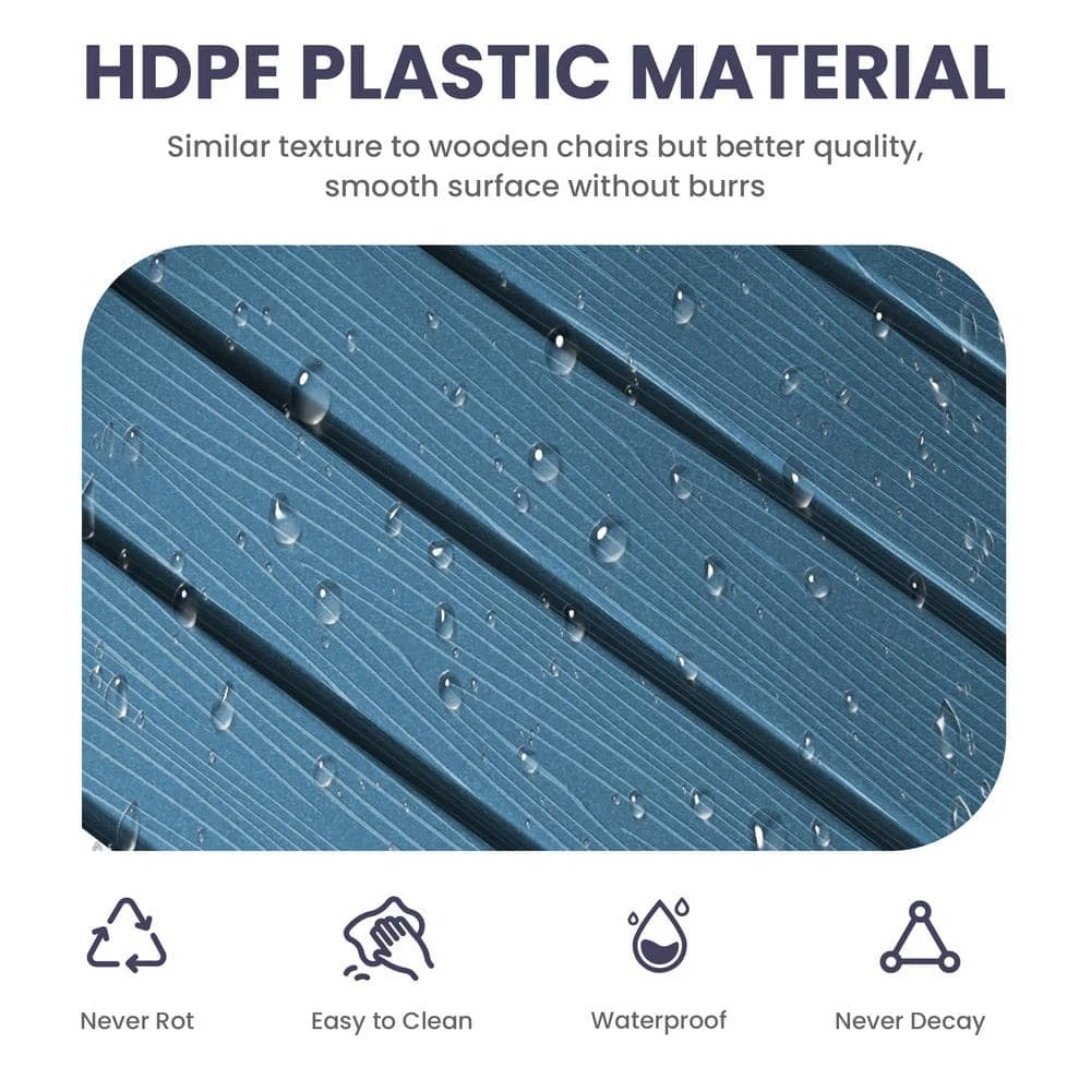 - Durable and sturdy: made of HDPE (high density polyethylene), the patio rocking chair is all-weather resistant, fade-proof and waterproof, the HDPE material is not susceptible to chipping, cracking or rotting, which remedies the limitation brought by other materials like polystyrene, also the attached stainless steel screws render this chair firmer and long lasting.