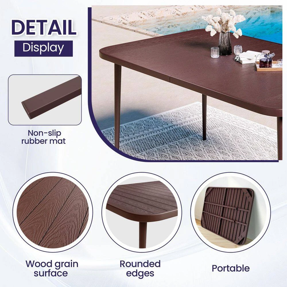 - Spacious dining table: the patio dining table is measured 55.1 in. D x 31.4 in. W x 29.5 in. H, which can holds up to 220 lbs. providing enough room to accommodate meals, drinks, and table decor