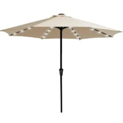 11 Ft. LED Lights Steel Outdoor Market Solar Patio Umbrella In Beige