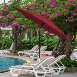 9 Ft. Steel Market Crank And Tilt Outdoor Patio Umbrella In Red