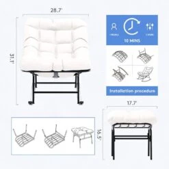Metal Outdoor Rocking Chair With White Padded Cushion And Ottoman Foot Rest For Balcony