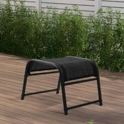Textilene Fabric Metal Frame Black Outdoor Ottoman With Navy Cushion For Patio(2-Pack)