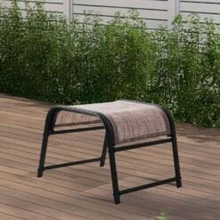 Textilene Fabric Metal Frame Brown Outdoor Ottoman With Navy Cushion For Patio(2-Pack)