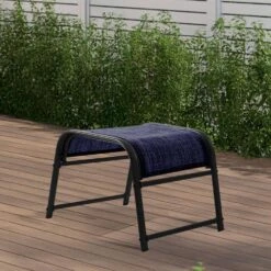 Textilene Fabric Metal Frame Navy Outdoor Ottoman With Navy Cushion For Patio(2-Pack)