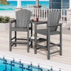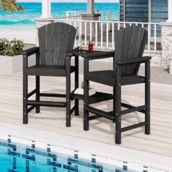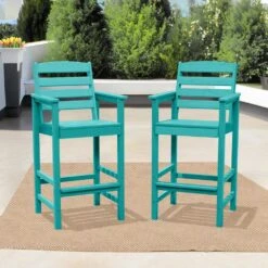 2-Piece HDPE Plastic Adirondack Outdoor Bar Stools In Aruba Blue