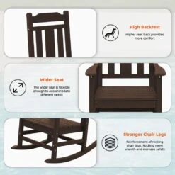 Coffee HDPE Plastic Adirondack Chair Outdoor Rocking Chair For Patio And Garden (Set Of 1)
