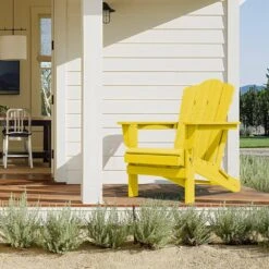 Classic Yellow HDPE Folding Plastic Adirondack Chair (1-Pack)