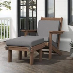 Classic Outdoor Patio HDPE Plastic Adirondack Chair With Footrest Ottoman In Brown