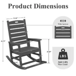 Gray HDPE Plastic Adirondack Chair Outdoor Rocking Chair For Patio And Garden (1-Pack)
