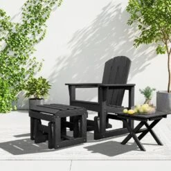 HDPE Black Adirondack Chair-Panel-Back All-Weather Heavy Woodgrain For Garden, Poolside And Deck