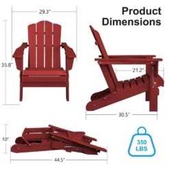 HDPE Classic Dark Red Folding Plastic Adirondack Chair (1-Pack)