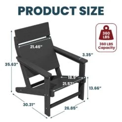 HDPE Grey Adirondack Chair-Panel-Back All-Weather Heavy Woodgrain For Garden, Poolside And Deck