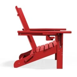 Classic Dark Red Folding Plastic Adirondack Chair With Double Cup Holder