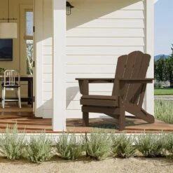 Classic Coffee HDPE Folding Plastic Adirondack Chair (1-Pack)