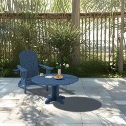 Navy Blue Round HDPE Conversation Coffee Table, Weather Resistant Outdoor Dining Table