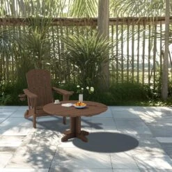 Brown Round HDPE Conversation Coffee Table, Weather Resistant Outdoor Dining Table