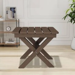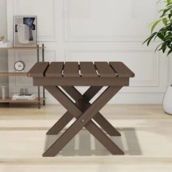 Brown HDPE Plastic Portable Patio End Table Folding Outdoor Coffee Table (Set Of 2)