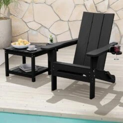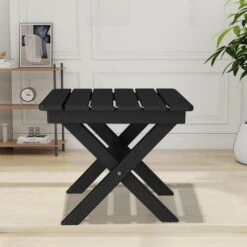 Black HDPE Plastic Portable Patio End Table Folding Outdoor Coffee Table (Set Of 2)