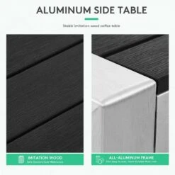 Black Square Aluminum Frame 16 In. Outdoor Side Table Light Weight