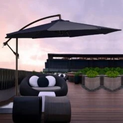 120 In. Outdoor Offset Cantilever Umbrella Patio Umbrella In Gray