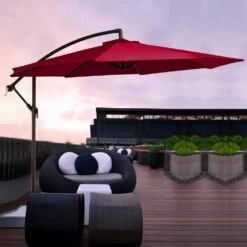 120 In. Outdoor Offset Cantilever Umbrella Patio Umbrella In Red