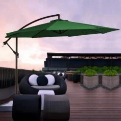 120 In. Outdoor Offset Cantilever Umbrella Patio Umbrella In Green