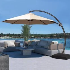 230 Lbs. 4-Piece Plastic Cantilever Offset Patio Umbrella Base Easy-Fill Base In Black