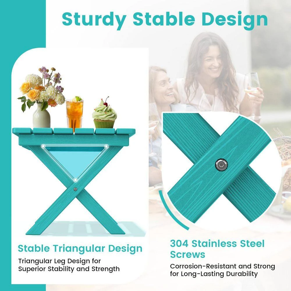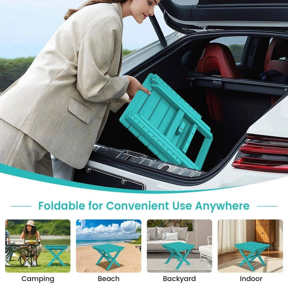 Compact, stylish, and built to last, this foldable HDPE patio end table is the perfect companion for your outdoor adventures or relaxing moments. Crafted from premium high-density polyethylene (HDPE), it boasts exceptional durability, standing strong against harsh weather, UV rays, and everyday wear. Whether you’re sipping coffee on your patio, enjoying a book in the garden, or hosting a backyard gathering, this table offers a reliable surface for your essentials. Its foldable design ensures effortless portability and storage, making it ideal for both small spaces and on-the-go activities like camping or picnics. Lightweight yet sturdy, it’s easy to move wherever you need it. Plus, its smooth surface resists stains and requires minimal maintenance-just wipe it clean and you’re good to go. Versatile, practical, and effortlessly chic, this end table is more than just furniture-it’s an essential piece that enhances your outdoor lifestyle with convenience and charm.