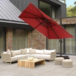 10 Ft. X 10 Ft. Sq. Cantilever Patio Umbrella With Weighted Base In Red
