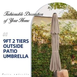 10 Ft. 8 Sturdy Ribs Outdoor Market Patio Umbrellas With Crank Lift In Beige (2-Tiers)