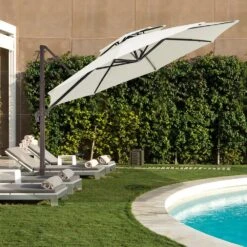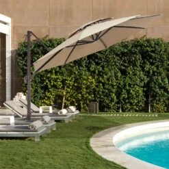 11 Ft.Outdoor Cantilever Offset Umbrella Patio Umbrella With Sandbag And Cover In Beige